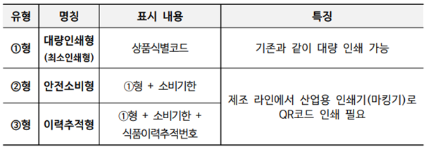 - 소비자가 온라인을 통해 다양한 식품 정보를 간편하게 확인하고, 식품업체가 자동화된 방식으로 유통 및 판매를 관리할 수 있도록 정보를 담아 식품 포장지에 표시하는 QR코드