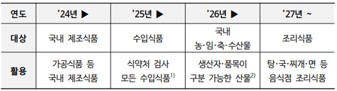 - 국내 제조 식품을 시작으로 모든 식품 적용 목표