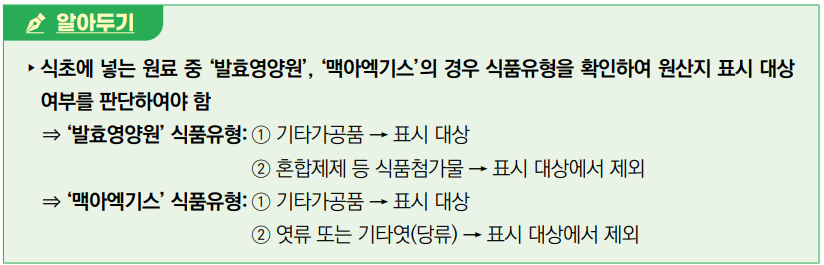 * 발효식초는 원산지 표시 대상 원료가 없는 것으로 그 자체가 원산지 표시 대상에서 제외되는 것은 아님